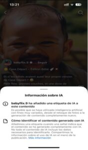 META encourages the labeling of generative content. In their case, it is made easy for the user themselves to label this content when publishing it. For this, there is the “Add AI label” button just before posting.