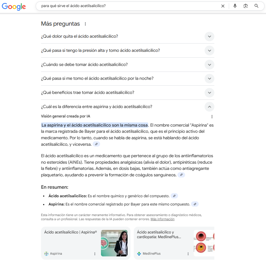 However, the arrival of Generative Artificial Intelligence (AI) tools such as Googleâs Gemini has radically changed this search behavior. Users now feel more comfortable formulating conversational searches with complex questions, like: âwhat is acetylsalicylic acid used for?â